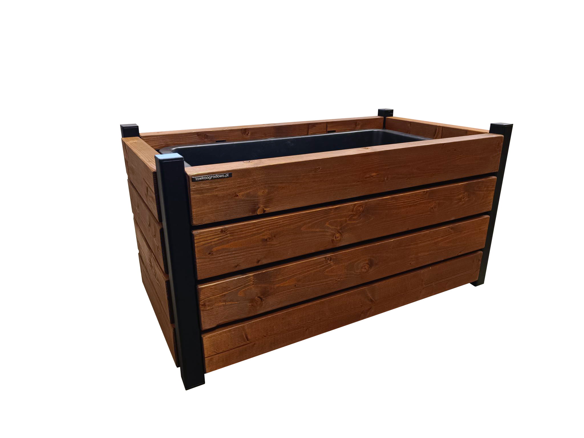 Wnętrze donicy jest fabrycznie wyłożone folią ochronną, co zabezpiecza drewno przed bezpośrednim kontaktem z wilgotną ziemią i przedłuża jego trwałość.