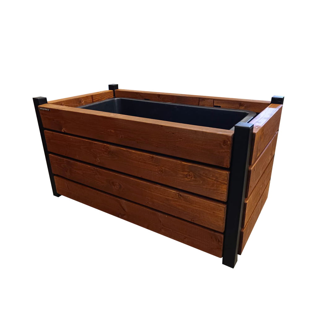 Donica ogrodowa o pojemności 90 litrów to wyjątkowe połączenie naturalnej estetyki drewna świerkowego z trwałością stalowej konstrukcji, stworzone do ekspozycji roślin w ogrodach, na tarasach oraz w przestrzeniach miejskich.